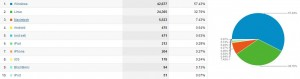 The most popular browser with visitors of my site is Firefox, followed by Chrome, IE and Safari. I was a bit surprised that Safari did more poorly than IE, but I guess it can be expected when you see the next figure with OS’s.